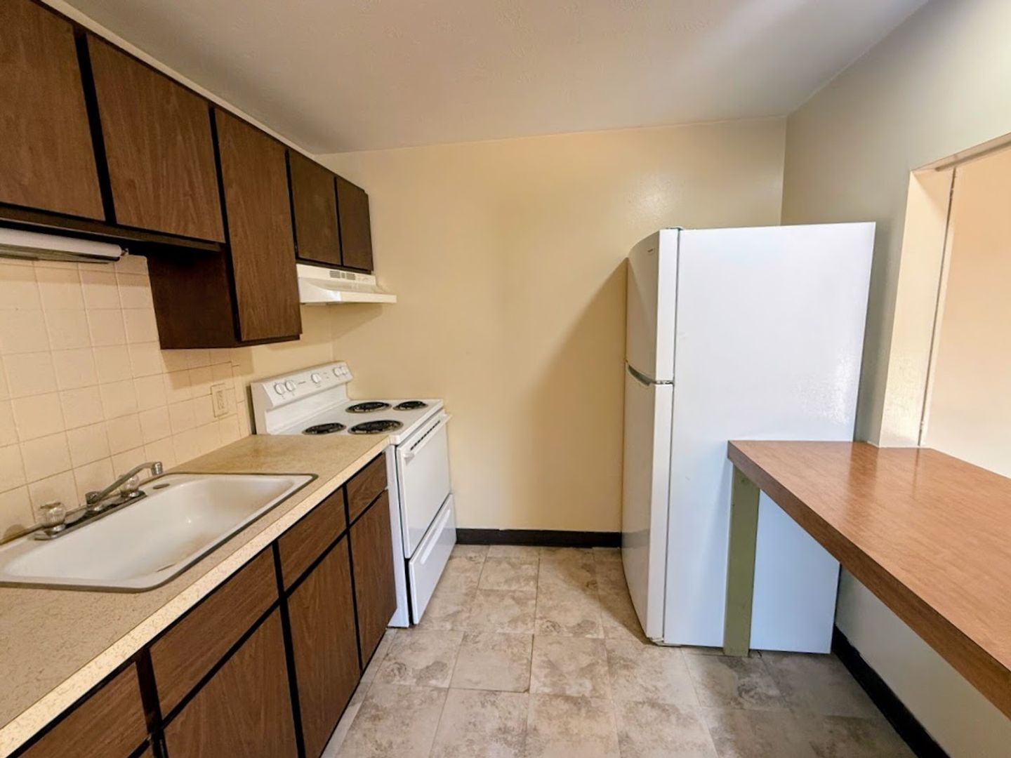 • Kitchen includes stove and refrigerator