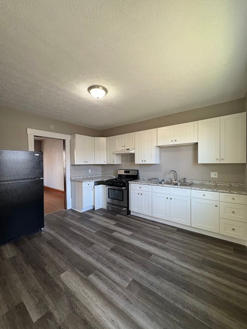 Kitchen - Stove and refrigerator, updated cabinets and countertops.